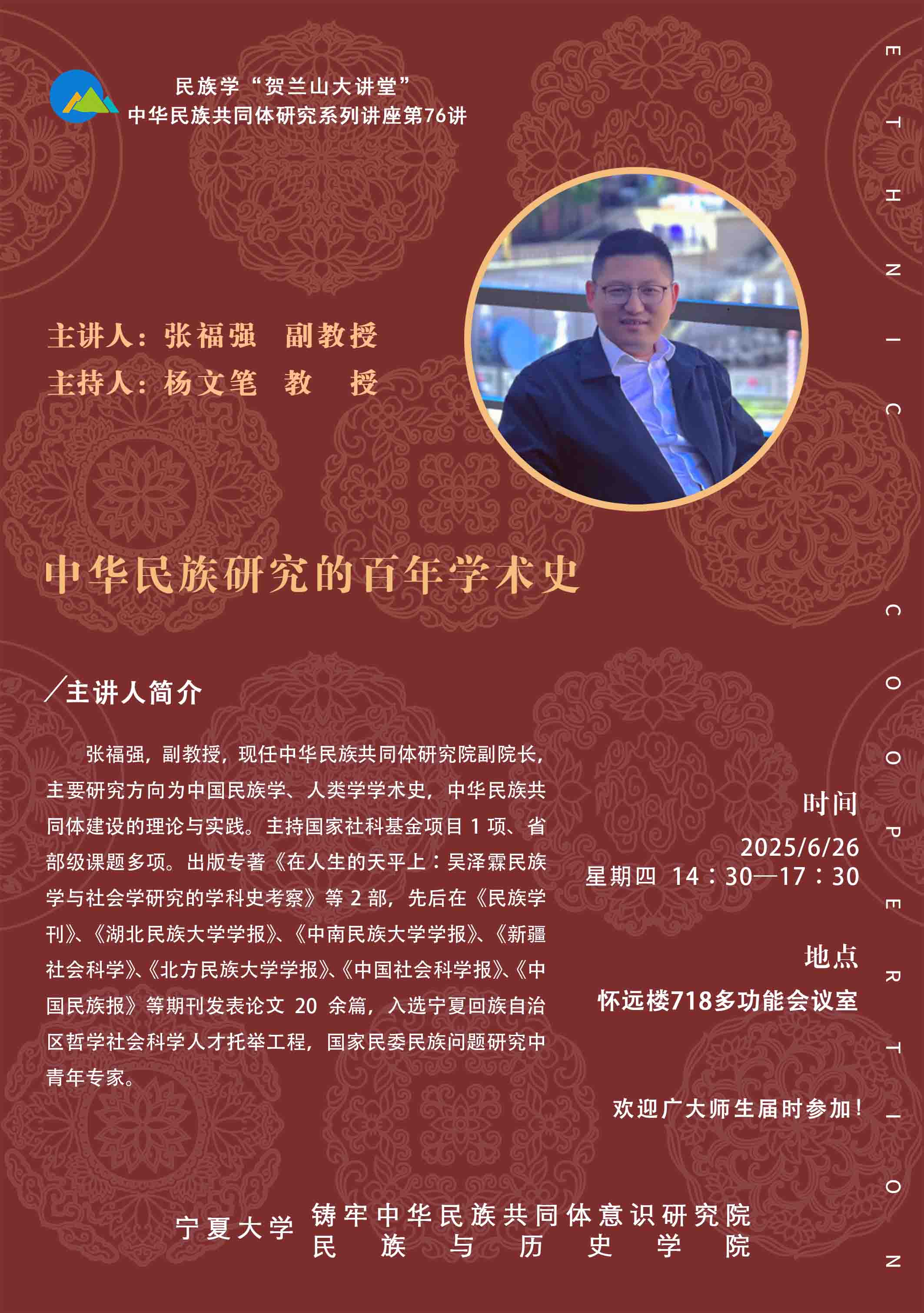 民族学“贺兰山大讲堂” 中华民族共同体研究系列学术讲座第七十六讲