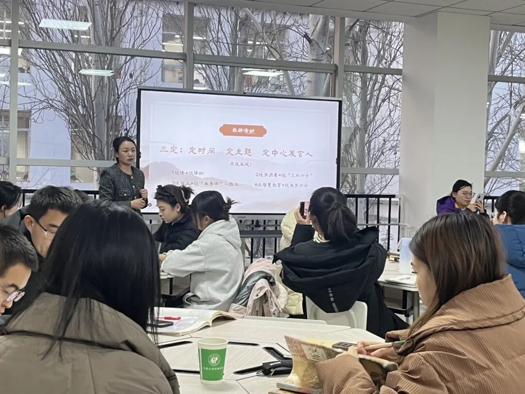 教研会的后半程是读书分享环节。路晓倩同学分享了《家庭、私有制和国家的起源》,她不仅解读文本,更将书中的理论观点与高中历史教学的具体内容相联系,探讨了如何将经典理论转化为可用的教学资源。
