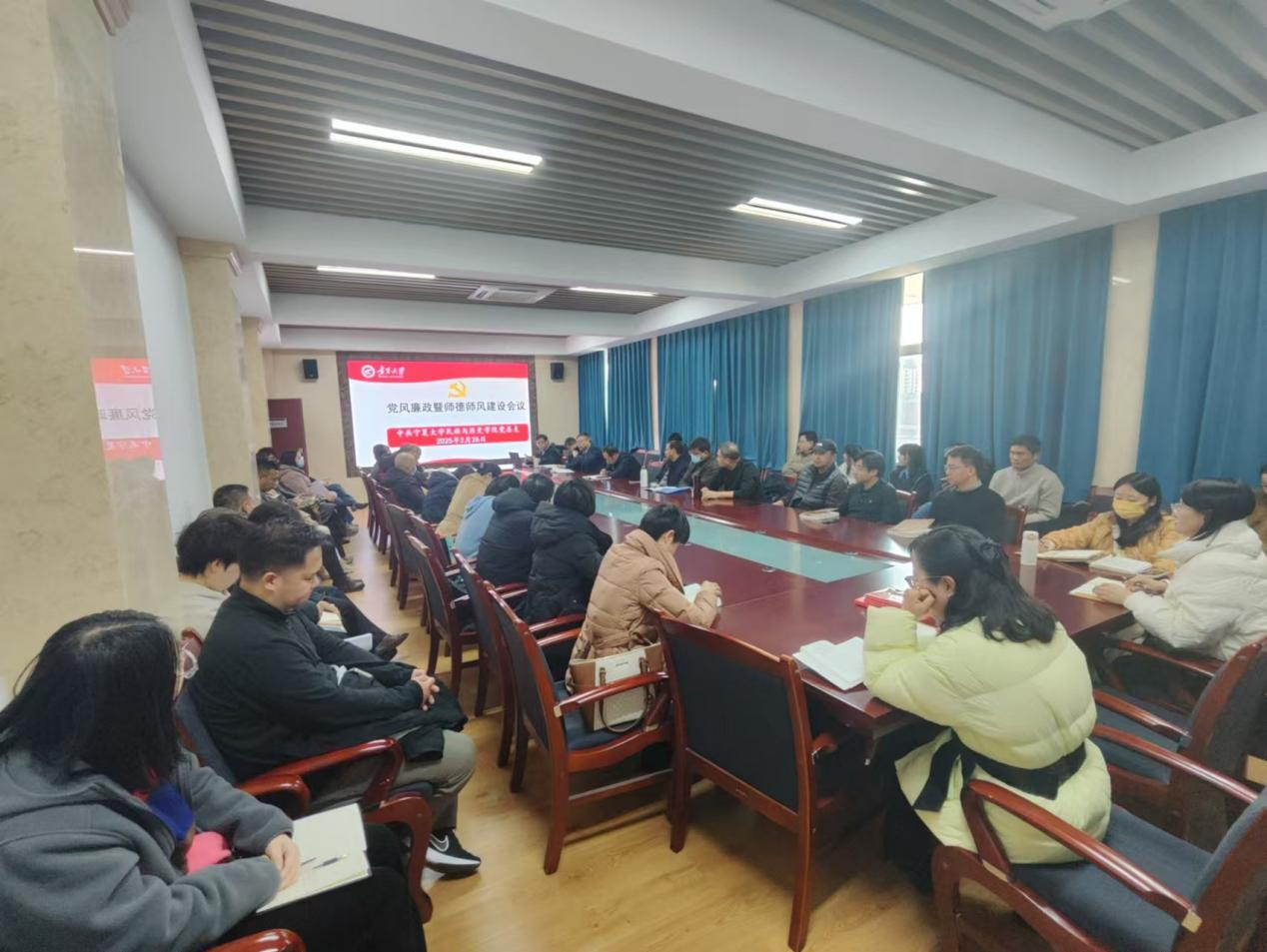 会上,党总支书记刘杰以《加强推进党风廉政建设和师德师风建设,以严的基调为学院高质量发展提供坚强纪律保障》为题作专题部署。他指出,2025年是学院实施“十四五”规划的关键之年,必须坚持严的基调不动摇,纵深推进全面从严治党。一是要压实主体责任,强化政治监督,推动教学科研提质增效,确保专项治理、作风建设、党纪学习教育取得新突破;二是要扛牢管党治党政治责任,严格落实“一岗双责”,规范执行民主集中制和“三重一大”集体决策制度,营造风清气正的政治生态;三是夯实基层党建根基,推动师德师风建设与意识形态责任落实,深化铸牢中华民族共同体意识教育,促进党建与教学科研深度融合;四是健全警示教育长效机制,推进党纪学习教育常态化,引导党员干部知敬畏、存戒惧、守底线。