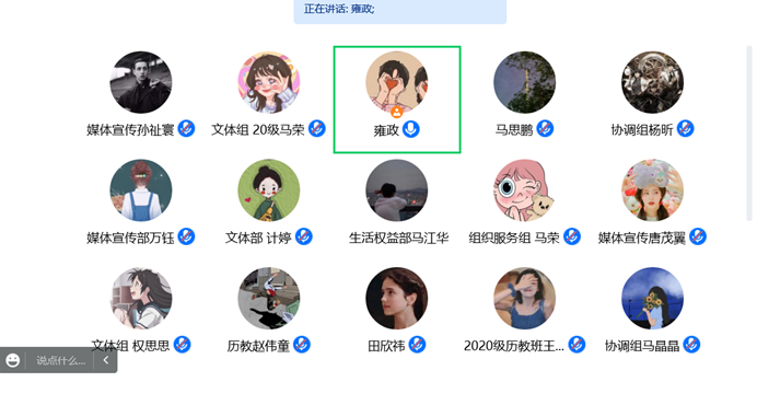 同学们积极分享了自身关于党的二十大召开的感想与体悟:胡扬名回顾了党十年来的彪炳史册的成就,并以“为有牺牲多壮志,敢教日月换新天”这句诗说明党始终坚持初心使命和革命精神。杨昕则从社会主义发展史的角度,回顾了党的创造性成就,她提到:“一代人有一代人的长征,一代人有一代人的使命,我们这一代青年应当扛起时代使命,为建设祖国继续奋斗。”