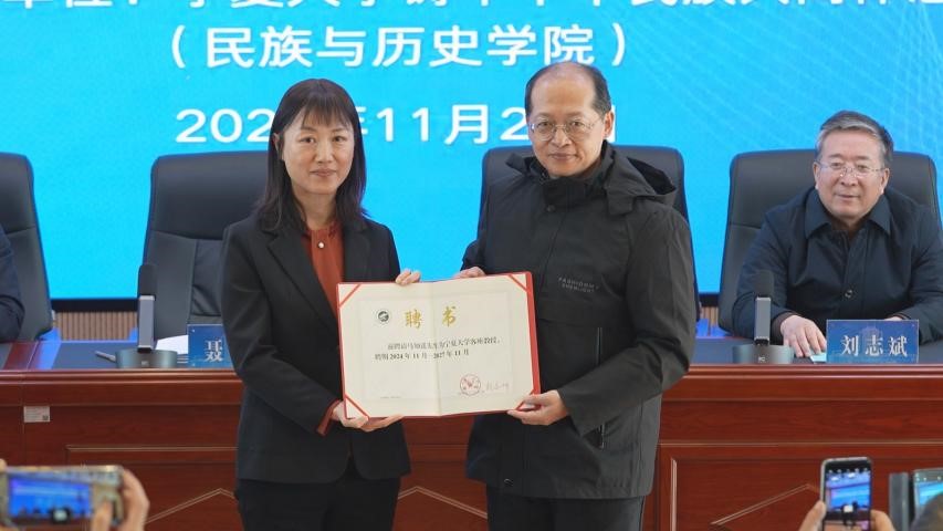 聂丹副校长为国家非物质文化遗产展览展示研究中心专家委员会主任马盛德研究员和天津大学马知遥教授颁发了澳门永利皇宫