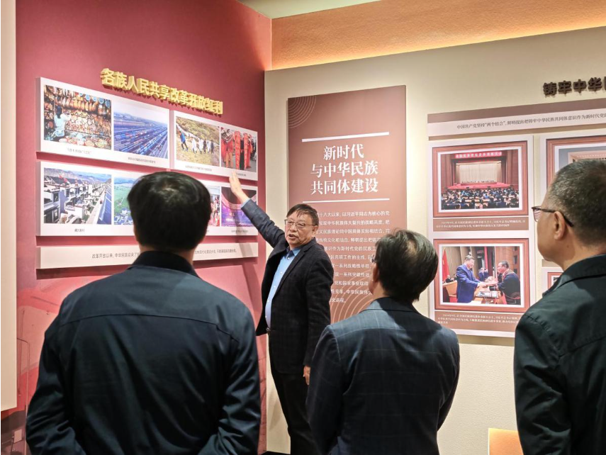 揭牌仪式后,与会嘉宾及师生共同参观了基地展厅,现场深入了解了中华民族共同体的历史渊源与时代价值。(来源:中国新闻网记者:李佩珊)