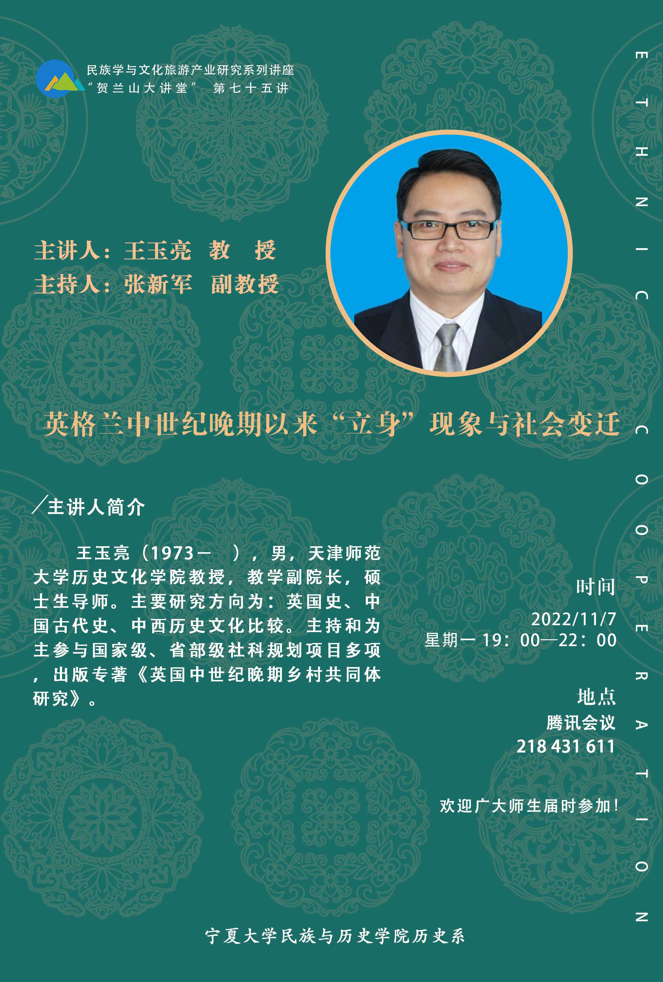民族学与文化旅游产业研究系列讲座“贺兰山大讲堂”(第七十五讲)