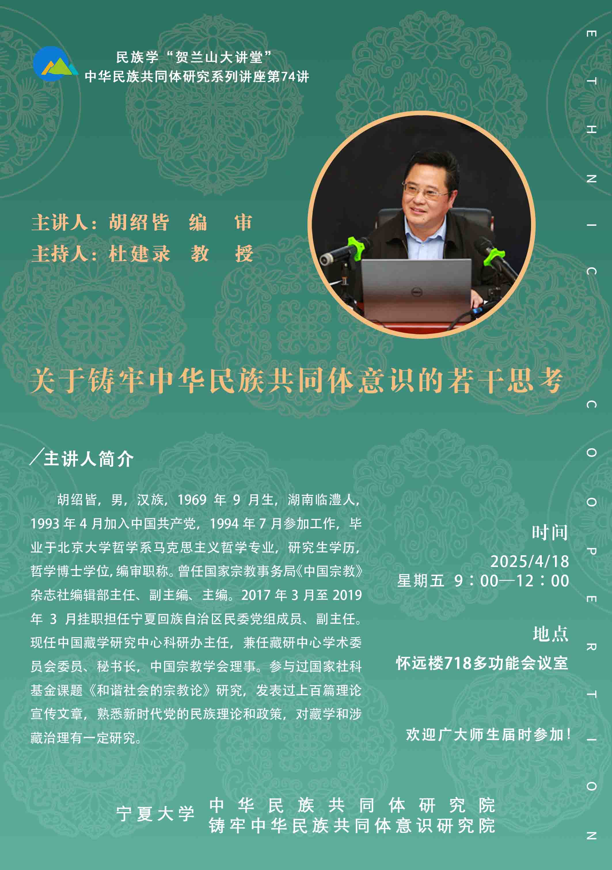 胡绍皆,男,汉族,1969年9月生,湖南临澧人,1993年4月加入中国共产党,1994年7月参加工作,毕业于北京大学哲学系马克思主义哲学专业,研究生学历,哲学博士学位,编审职称。曾任国家宗教事务局《中国宗教》杂志社编辑部主任、副主编、主编。2017年3月至2019年3月挂职担任宁夏回族自治区民委党组成员、副主任。现任中国藏学研究中心科研办主任,兼任藏研中心学术委员会委员、秘书长,中国宗教学会理事。参与过国家社科基金课题《和谐社会的宗教论》研究,发表过上百篇理论宣传文章,熟悉新时代党的民族理论和政策,对藏学和涉藏治理有一定研究。
