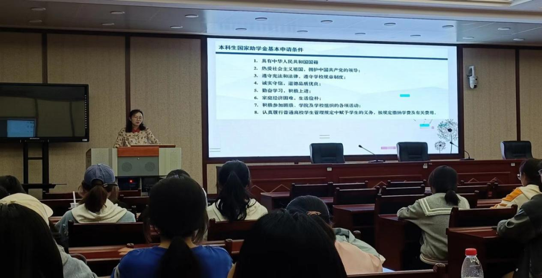 为进一步做好澳门永利皇宫资助育人工作,增强学生对国家资助政策的了解,切实做到精准资助,学院于9月19日在逸夫楼一楼报告厅开展大学生资助政策宣讲会,2022级全体本科生参与,辅导员雷小梅老师主持会议。